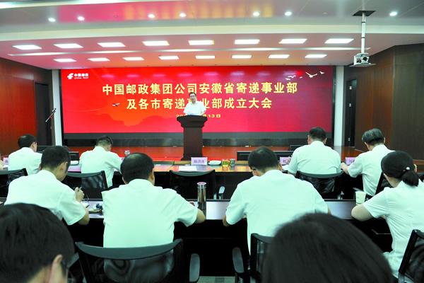 本资料讯 (撰稿 彭岩) 按照中国邮政集团公司深化寄递翼改革的统一部署,9月13日,中国邮政集团公司安徽省寄递事业部及各市寄递事业部成立大会召开,省分公司党组书记、总经理、省寄递事业部总经理陈洪涛作重要讲话,省分公司党组成员、副总经理汪青主持会议。