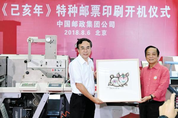 本资料讯 8月6日下午,由中国邮政集团公司主办的《己亥年》特种邮票印刷开机仪式在北京邮票印制局举行。著名艺术家韩美林,中国邮政集团公司党组书记、董事长刘爱力,集团公司党组成员、副总经理李丕征出席仪式,著名演员、主持人王刚主持仪式。当天活动揭晓了《己亥年》生肖邮票的设计图稿,并正式启动《己亥年》生肖邮票印制。