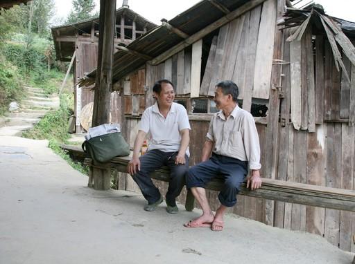 张林昌(左)在邮路上与村民唠家常,了解村民困难