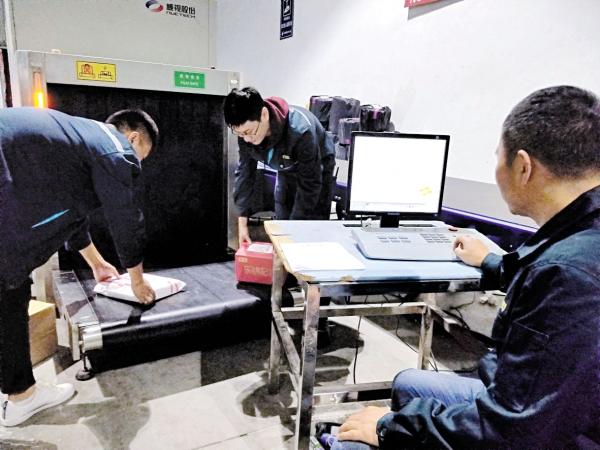 合肥邮区中心局对发往上海方向的邮件(含经转邮件),全部逐件过X光安检机安检。