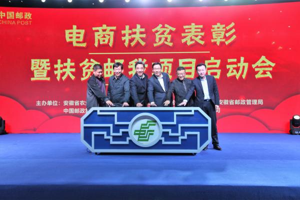 12月4日,由中国邮政集团公司安徽省分公司、省农业农村厅、省商务厅、省扶贫开发办公室、省邮政管理局、中邮(安徽)网络技术有限公司共同主办的电商扶贫表彰暨扶贫邮我项目启动会在省电视台演播大厅举行。中国邮政集团公司安徽省分公司党组书记、总经理陈洪涛,副总经理陈平;省农业农村厅副厅长陈卫东、省邮政管理局局长李勇、省商务厅副厅长乔兴力、省扶贫开发办公室副调研员王广志出席了启动会。陈洪涛、陈卫东、李勇等领导分别致辞。与会领导共同启动了2019年扶贫邮我项目。