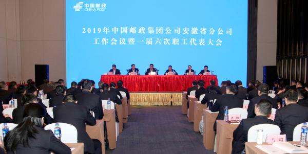 1月21~22日,2019年中国邮政集团公司安徽省分公司工作会议暨一届六次职工代表大会召开。会议的主要内容是:总结2018年主要工作,回顾改革发展成就,规划新时代发展蓝图、路径,部署2019年工作任务;动员全省邮政员工统一思想、凝聚共识、鼓足干劲、接续奋斗,认真履行国企的经济责任、政治责任和社会责任,做优做强做大安徽邮政。