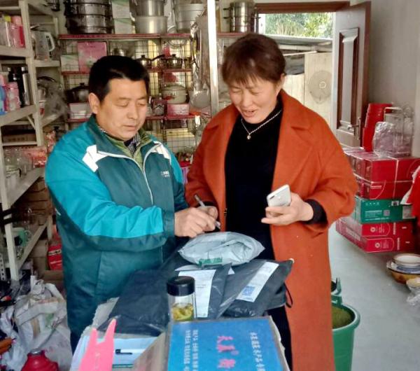 “张大爷,您的快递到了,请签收。”3月11日上午,像往常一样,潜山市槎水支局投递员王德海开始了一天的投递工作。“进来吃个鸡蛋再走吧。”张大爷热情招呼道。“不了不了,我还得赶着送包裹哩。”