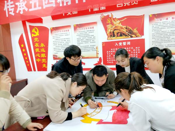 4月29日,阜阳市分公司团委举办以“传承五四精神,凝聚青年力量”为主题的团日活动。图为手绘团徽环节,大家认真勾画轮廓、涂色,坚定作为一名团员的责任和使命。王朝宇 摄