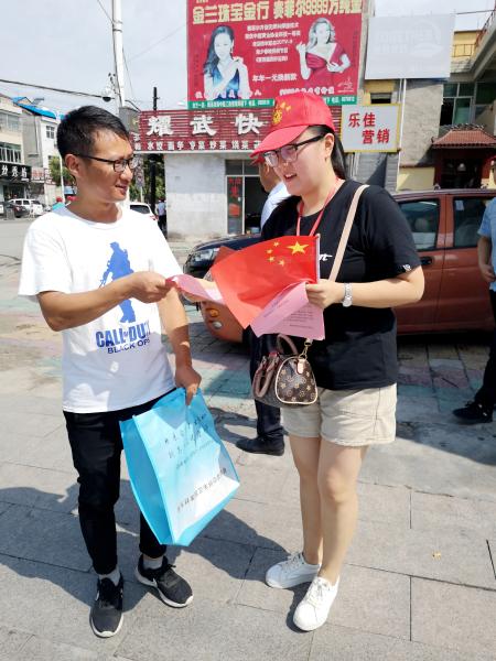 7月30日,濉溪县分公司员工冒着高温酷暑走街头、进社区,发放宣传单页,进行省级文明城市创建宣传。(刘丹丹 王传英 摄)
