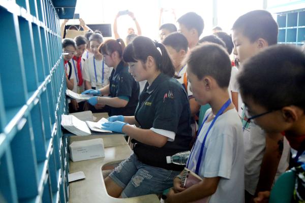 8月5日,合肥邮区中心局开放信函内部处理环节,为来自育新小学的30名小学集邮爱好者讲解“一封信的旅行”。该局员工向孩子们介绍了百年邮政悠久历史,阐述了邮政“一封信一颗心”的光荣传统。姚俊 摄