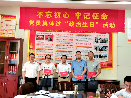 六安市分公司扎实开展好第二批“不忘初心、牢记使命”主题教育,进一步强化党员的初心和使命,以党支部为单位,围绕“六个一”:即开展一次谈心谈话、重读一次入党申请书、重温一次入党誓词、开展一次心路历程回顾、送上一张“政治生日”贺卡、赠送一份“政治生日”礼物,为党员集体过“政治生日”。
