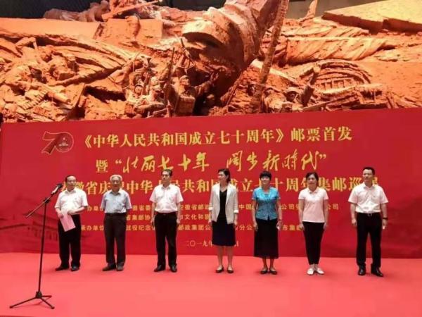 10月1日下午,由中共安徽省委宣传部、安徽省邮政管理局、中国邮政集团公司安徽省分公司、安徽省集邮协会、合肥市文化和旅游局主办的《中华人民共和国成立七十周年》纪念邮票首发暨“壮丽七十年 阔步新时代”集邮巡展启动仪式在渡江战役纪念馆举办。省分公司副总经理、省寄递事业部常务副总经理马俊林出席仪式并致辞。