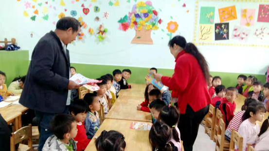 利辛县分公司组织投递人员上门服务,为中小学、幼儿园、留守儿童筛选适合的报刊杂志,向他们推介《学习报》《幼儿画报》等刊物。