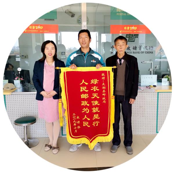 10月18日,一位年过七旬的老人将一面写有“绿衣天使就是行 人民邮政为人民”的锦旗送到了石严安手中。