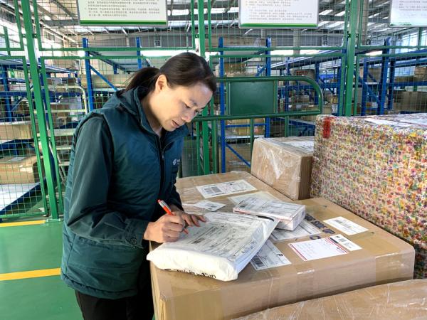 每一个邮件的外包装,刘玉梅都会仔细检查,每一封邮件的地址,她都会认真核对,发现地址模糊的时候,她坚持联系用户搞清具体地址后再行分拣。