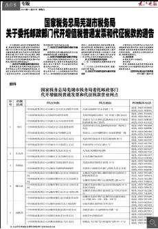 11月23日,芜湖市税务局在芜湖日报、大江晚报专版发布《国家税务总局芜湖市税务局关于委托邮政部门代征税款和代开增值税普通发票的通告》,进一步明确了代开单位、范围和税种,并公布了全市21个邮政代办网点信息。