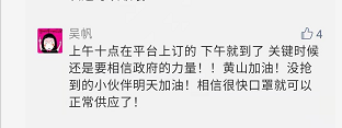 不止宣城邮政。2月3日起黄山邮政也与政府对接,作为政府“网上预约,即时配送”公益服务活动唯一派送单位,向黄山市中心城区居民配送防护口罩。2月3日,首批9800只市民急需的防护口罩朝发夕至,投递到每一位预约群众的手中。为了让公益服务活动切实惠及到每一个预约群众,邮政投递员对所有预约电话都详细确认,实名签收。收到防疫物资的群众纷纷向邮政的投递员竖起了大拇指,地方媒体宣传公益活动的文章下面满是大家对邮政配送速度的点赞。中国邮政在防控疫情的关键时刻,不仅顶得上,更能做得好!