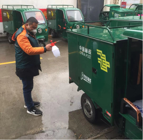 2月5日下午1时30分,道路上没有什么人,整个城市都比较安静,而在安庆市邮政分公司孝肃路营业部,却是异常繁忙。几个工作人员正逐一地对到站的包裹进行喷洒式的消毒,空气中弥漫着消毒水的味道。