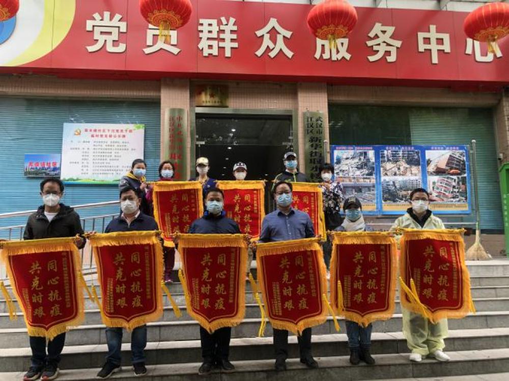 近日,江汉区新华路取水楼社区授予邮储银行湖北省分行党员突击二队“抗疫”锦旗,表彰其在疫情期间与广大社区居民“同心抗疫、共克时艰”的特殊贡献。