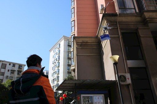 2月17日,一架邮政无人机带着EMS邮件缓缓来到江西省南昌市音乐花园小区居民周女士家窗前,这是江西邮政在疫情防控期间首次用无人机配送防疫物资。 □龙景君 摄