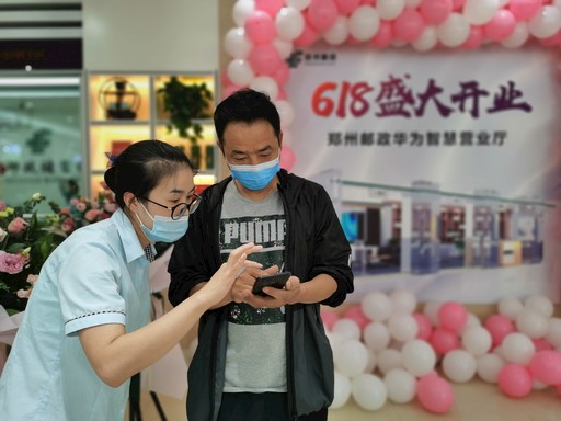 6月18日,河南省郑州市邮政分公司联合华为河南分公司在正兴街邮政网点打造的5G全场景智慧营业厅开业。到访客户可以在办理邮政业务的同时,品鉴华为最新终端产品,进行5G智能家居体验。下一步,双方将立足自身核心竞争力,通过优势互补、资源共享,在金融业务、科技创新、寄递物流等方面开展深入合作,定期举办AI学堂和兴趣沙龙,为市民带来更多5G科技的全新体验、更多便民利民惠民服务。图为客户现场体验华为5G产品。 □王璐  陈媛媛  摄影报道