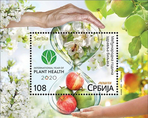 塞尔维亚邮政国际植物健康年小型张。