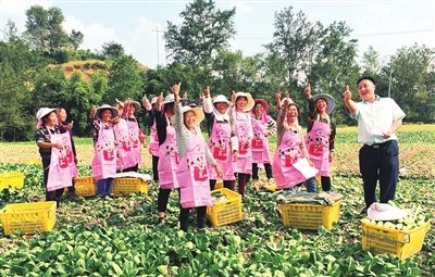 张武和菜农们一起,在菜地里上演一场时尚大气的围裙秀。□黄倩 摄