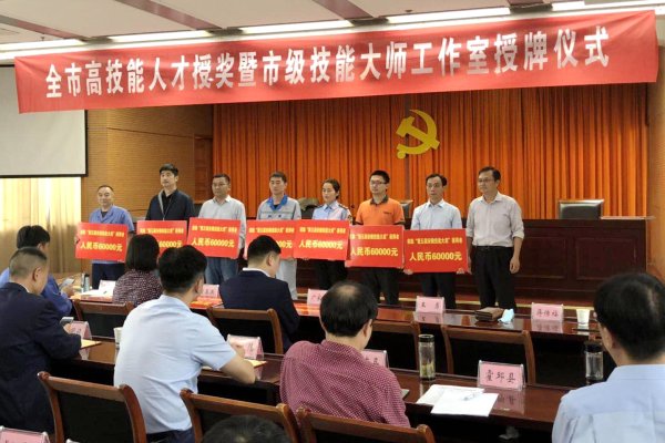 近日,六安市人社局举行全市高技能人才授奖暨市级技能大师工作室授牌仪式。卢海龙因获得“第五届安徽省技能大奖”荣誉称号,上台接受表彰。在获得省人社厅5万元奖励的基础上,市人社局再奖励6万元,累计获得奖励11万元。