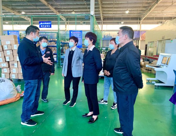 11月18日下午,省邮政管理局副局长鲍黎霞一行赴合肥国际邮件互换局检查境外疫情输入防控工作。