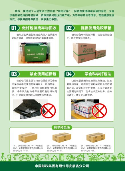 绿色邮政,绿色发展。安徽邮政愿与各方携手,共建美丽中国。为此我们发出倡议: