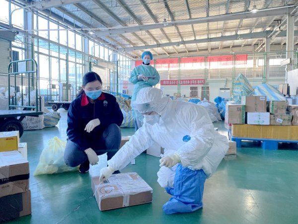 1月18日,合肥邮区中心局国际邮件互换局联合高新区疾控中心,开展核酸采样检测工作。