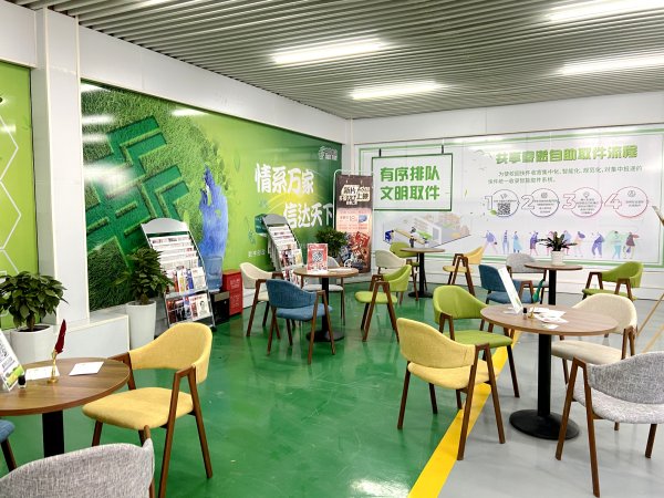 为营造轻松舒适的氛围,宿州市分公司在厅堂布局和动线管理上进行了精心设计。营业厅面积约500平方米,共打造了“五区一基地”,分别为综合服务区、智能取件区、文创定制与休闲阅读区、惠农产品展示区、普惠金融体验区以及青春驿站云创基地。厅堂布局将传统邮政服务与现代文化创意相结合,将寄递业务与精品特色服务相融入,将自助设备与人工互动完美结合,打造“校园+寄递+文化+金融”的综合化服务平台,全面改善客户体验。