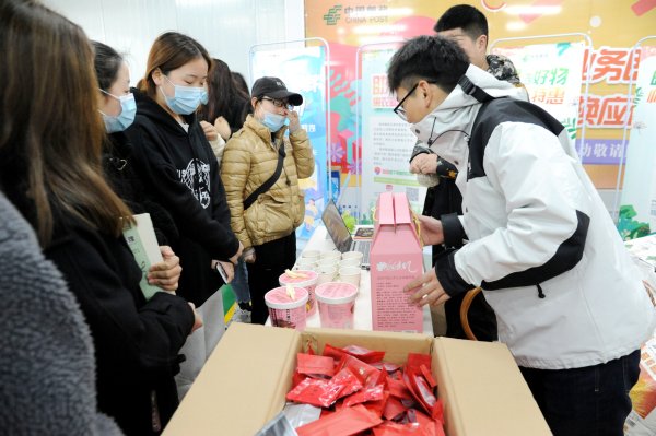 以营业厅为载体,打造场景化营销模式。搭载邮政文传产品,提供各类图书、报刊,方便学生阅读;搭载金融服务,为师生提供高效便捷的金融服务;搭载惠农服务,引导师生参与厅堂活动,享受“邮选好物特惠购”活动。来自泗县的红薯粉丝成了爆款产品,吸引众多学生现场品尝和点赞,“这个麻辣粉丝的味道比我在网上买的其他品牌味道还好,还好便宜。”大二的陈同学现场买了好几桶,要回去分给室友尝尝。