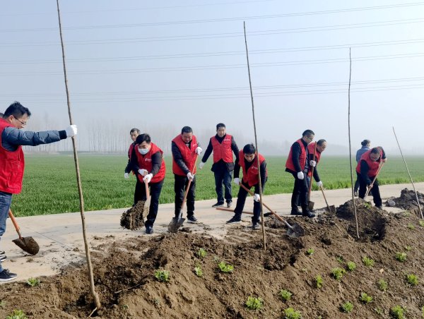 3月12日,涡阳县分公司10余名党员赴标里镇李大村,开展以“手植一棵树 绿化一片天”为主题的党日活动。植树现场党旗高高飘扬,大家分工明确,团结协作,干劲十足,运送树苗、挥锹填土、踩实踏紧、植后浇水等工作有条不紊地展开,为早春的李大村增加了一道靓丽的风景线。(杨青州 孔欢欢 黎慧 程立恒 夏俊杰 常冠林 赵雷)
