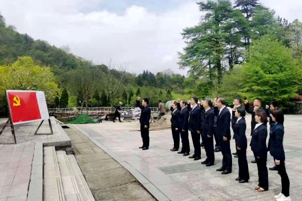 在金寨红军广场革命烈士纪念碑前,党员干部整齐列队、庄严肃立,怀着对先烈无比崇敬心情,向革命烈士纪念碑敬献花篮,表达对革命烈士的深切缅怀和无限敬仰。大家重温入党誓词,坚定革命理想信念,不忘初心使命。参观金寨县革命博物馆,观看展区文物和历史照片等,深入学习革命先烈们的英雄事迹,深切缅怀革命先烈的丰功伟绩。