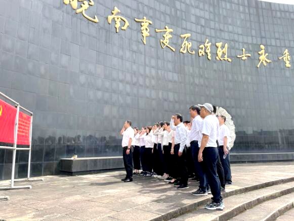 纪念碑前,全体党员面向党旗、高举右拳,用共产党员特有的方式重温红色记忆,缅怀革命先烈。通过实地参观,全体党员接受了一次难忘的党史教育和党性洗礼。