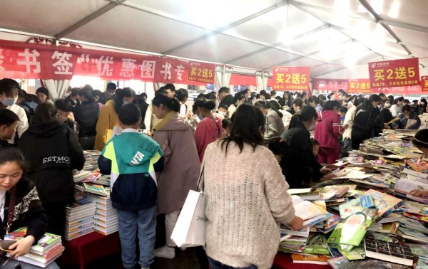 “这里书的种类特别多,我们班同学都来买了,能淘到很多喜欢的书。”灵璧县一中初二年级的李同学抱着一摞书从热闹的图书巡展现场挤出来。