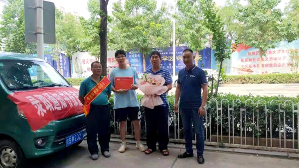 “同学你好,祝贺你被国防科技大学录取,这是录取通知书,请收好!”7月13日,芜湖邮政湾沚区分公司的揽递员俞憬斌顶着烈日驱车来到六郎镇周皋村,将录取通知书送到黄晨同学手上,同时表达了祝贺。