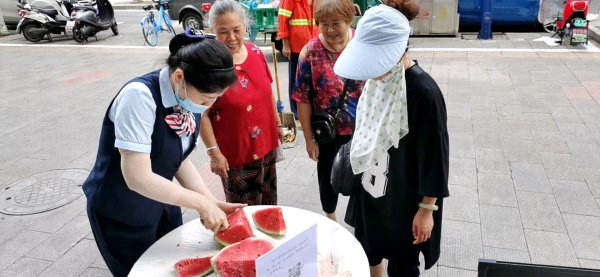 “这西瓜又大又甜,邮政服务真贴心。”7月21日上午,在花山商业街营业所门口,一群环卫工人吃着邮政网点免费提供的西瓜,非常高兴。