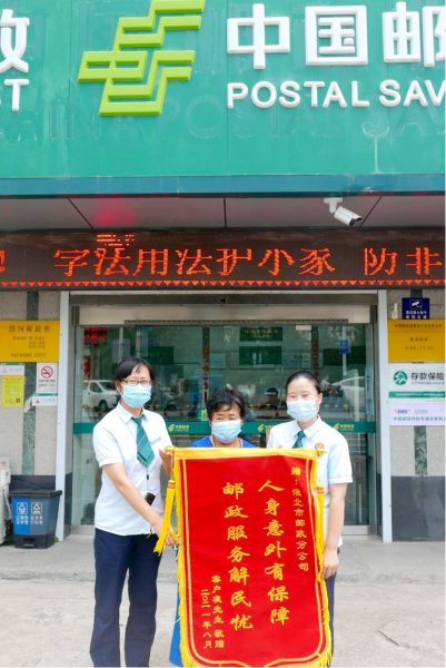 “真得是太谢谢了,这面锦旗您一定要收下。”“不用客气,这都是我们应该做的。”8月7日下午,客户凌先生的家人来到淮北市分公司岱河营业所,送上写有“人身意外有保障 邮政服务解民忧”字样的锦旗。