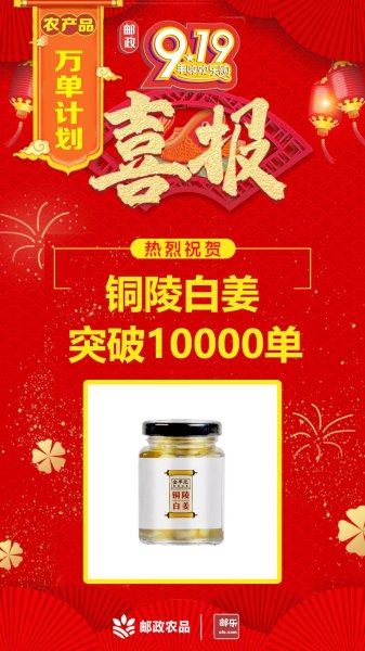 铜陵市分公司成功打造铜陵白姜和铜陵姜田米2款万单农产品,实现订单20449单。
