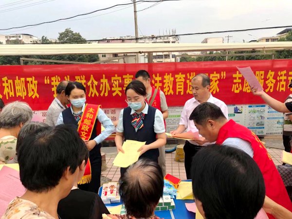 通过普法宣传,加深了太和邮政与社区群众的联系,提升了群众法治意识和法治素养,营造“尊法、学法、懂法、守法”的良好氛围。