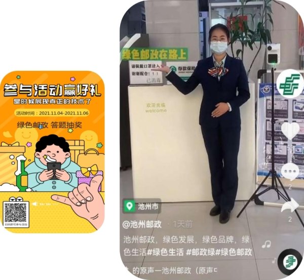 绿色邮政自创视频“抖”起来。自创活动宣传短视频,在池州邮政官方抖音号发布,发布日浏览量突破2000余人次。