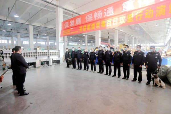 11月16日,淮南市公安局禁毒支队、市邮政管理局、市分公司在大通邮件处理中心联合开展寄递渠道禁毒百日攻坚行动演练。