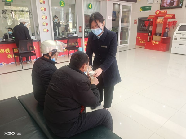 2022年冬天的一个清晨,一位耄耋老人步履蹒跚,来到营业大厅内要求办理存折取款业务。因忘记密码,导致连续输错密码后账户锁定,老人显得非常着急。在了解后得知这位老人是客户常先生的老伴,因常先生下肢瘫痪已有多年。负责人吴亚萍立即购买了一些水果,在第一时间带领两名工作人员携带相关资料去客户家里办理密码重置业务的授权工作,第二天常先生的老伴顺利办理了密码重置业务并取出了钱款。