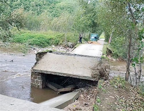 黑龙江省海林市板桥林场桥梁受洪水冲击而坍塌,车辆无法通过,柴河邮政支局投递员及时与林场联系,克服困难保障投递到位。□化彦飞 摄影报道