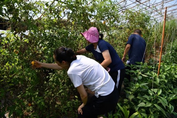 8点30分,记者与2号小园地园主陈娜相约,一起采摘蔬菜。从没下过菜地的“小白”们,手忙脚乱也没有陈大姐一个人摘得快。不过,在大家的共同努力下,订单蔬菜很快就采摘完毕。带着胜利的果实,记者和陈大姐一起赶往村里的邮政综合便民服务站。