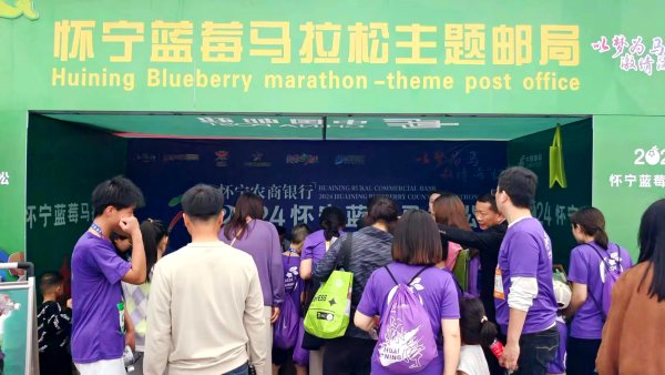 近日,2024怀宁蓝莓马拉松赛在怀宁县市民广场鸣枪开跑。赛事设置马拉松、半程马拉松、健康跑、亲子跑4个项目,现场热闹非凡。在现场的一侧,怀宁蓝莓马拉松主题邮局前也是人头攒动。