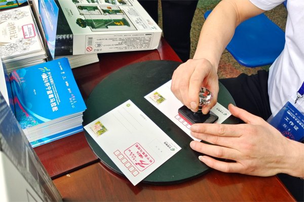 在明信片邮寄区,几位参赛选手正在快速书写。“我很喜欢明信片,特别是参与这种重大活动,亲手写一张明信片,盖上纪念章戳,寄给亲朋好友,与他们一起分享,很有意义。”参赛选手汪震说。