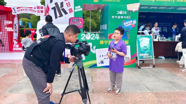 “大家好,我是播报员张依依,在我身后是主题邮局明信片纪念戳盖章区,在我右手边是赛事打卡区……”火爆的现场引来县融媒体中心驻足拍摄和采访,一位小学生开心地客串当起现场小记者。