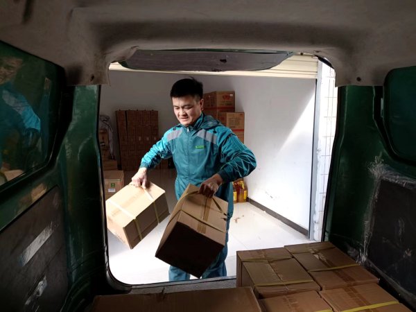 10:50,经开区仓库,领取农村网点邮购的大米等物资。