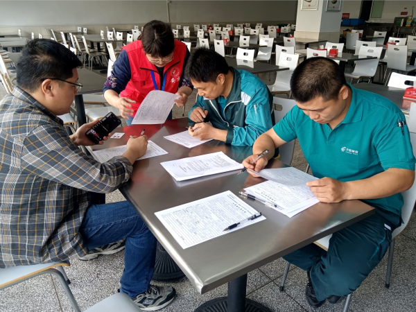 一大早,来自各个岗位的员工陆续来到献血活动现场,征询体检、填表、登记、检测血液、上车献血,井然有序地进行着。