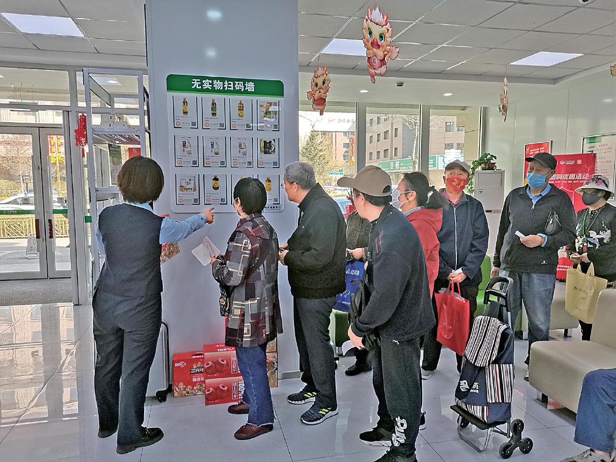 长春邮政在营业厅设置无实物扫码墙,方便会员在线选购商品。□吴岩 摄