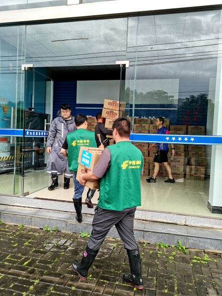 6月23日一大早,一辆装有500余件救援物资的邮政车辆,从屯溪区开往黄山区应急管理局。同时黄山区邮政分公司召集8名员工组成防汛应急先锋队,帮助搬运捐赠的救灾物资,及时发往黄山区受灾较重的乡镇。